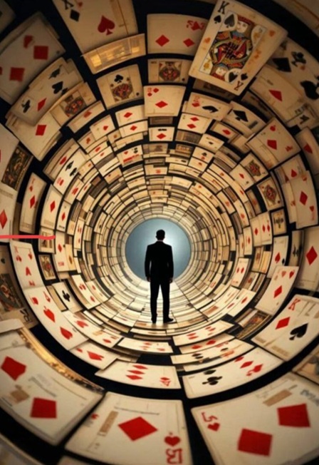 фокусов: червовые карты превращаются в сердечки, которые разлетаются по всему