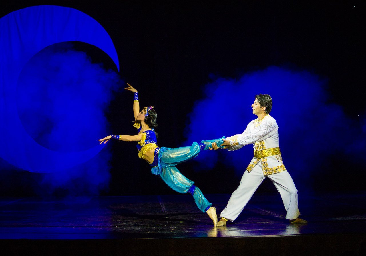 Жемчужина арабского Востока — веселая и поучительная «Сказка об Аладдине и волшебной лампе» из сборника «Сказок тысячи и одной ночи» — позволила создать увлекательный балет с калейдоскопом ярких костюмов, танцами и неподражаемыми восточными музыкальными мотивами.
