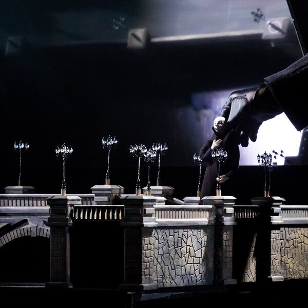 Можно не до конца разобраться в тонкостях карточной игры, но дело не в правилах. Германн, словно в квесте, блуждает по черно-белым улицам и мостам, коридорам и лестницам. Забыв об осторожности, он идет против своих принципов, походя ломая чужие судьбы. Подобные игры подразумевают двойников, и куклы как никто другой справляются с этой ролью, пугая и прельщая людей.